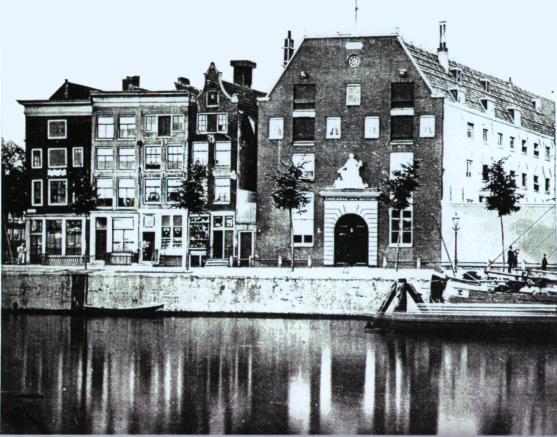 The bakery is on the left, where a sailor can clearly be seen leaning against the wall. At the right end is the Zeevaartschool, the Maritime School. The narrow house to the left of the Maritime School also belonged to Jacob.