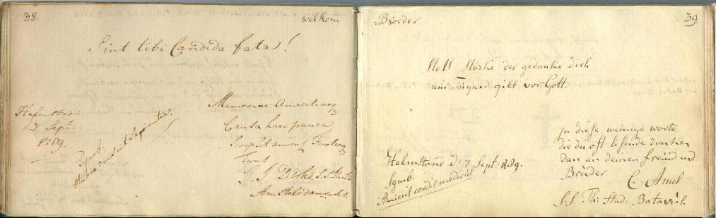 Ich bekam eines Tages ein e-mail aus Deutschland, vom jemandem der schrieb er habe Information über Johannes Jacobus Dirks. Es scheint, daß Johannes Jacobus wärend seine Studienzeit in Helmstedt einen Vorahnen der Frau diesen Mannes befreundet habe, einen gewissen Johann August Gottfried Gericke. In 1789 lud Gericke Johannes Jacobus ein eine Eintragung in sein Freundschaftsbuch zu schreiben: