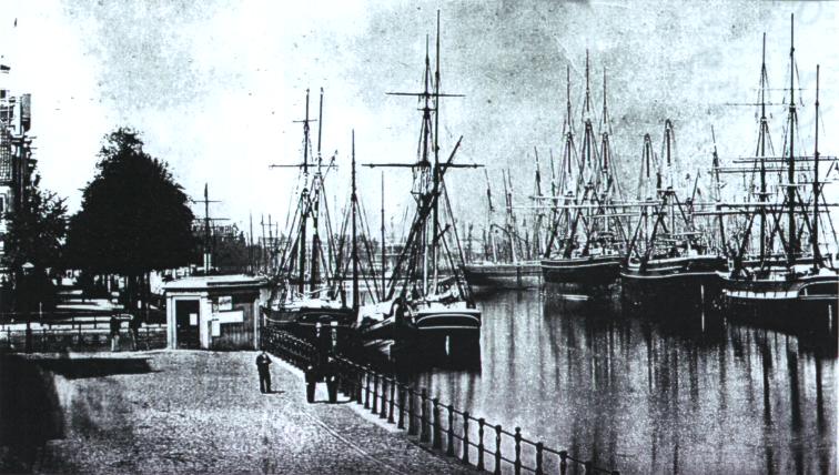 The corner of the Schippersgracht, the Schips Canal, always full of ships and, thus, customers for the bakery. Jacob's Bakery can just be seen on the left hand side.