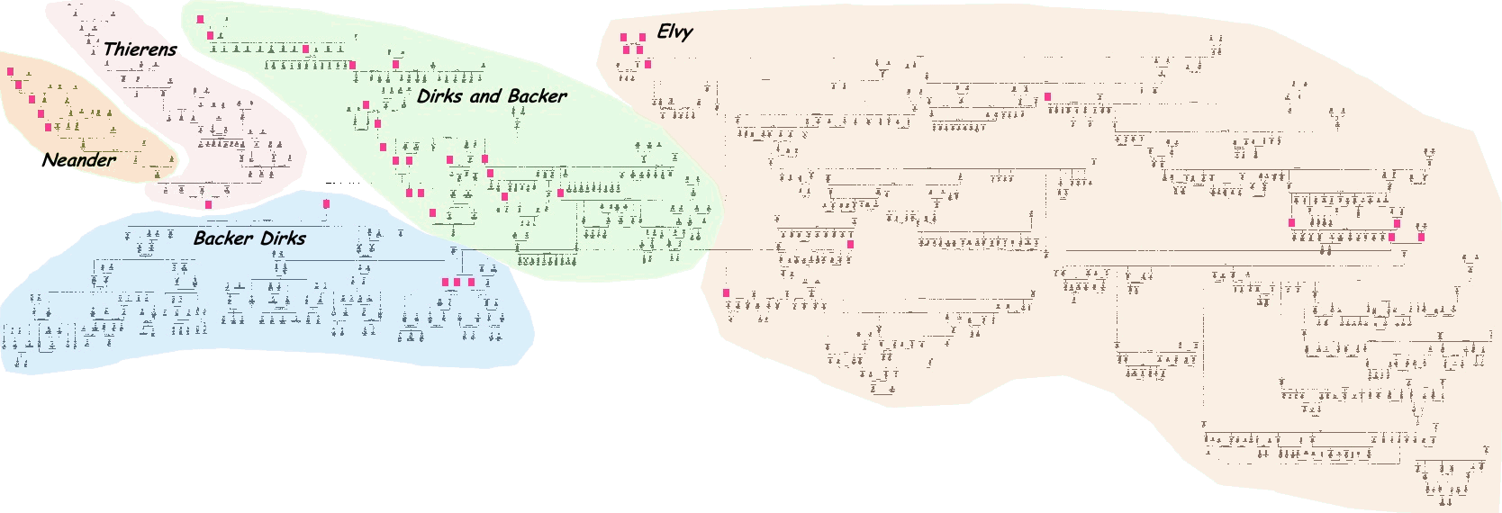To see detailed family tree diagrams, please go back to the top of the home page (click the back button) and click on the link called 'Detailed family tree diagrams'.